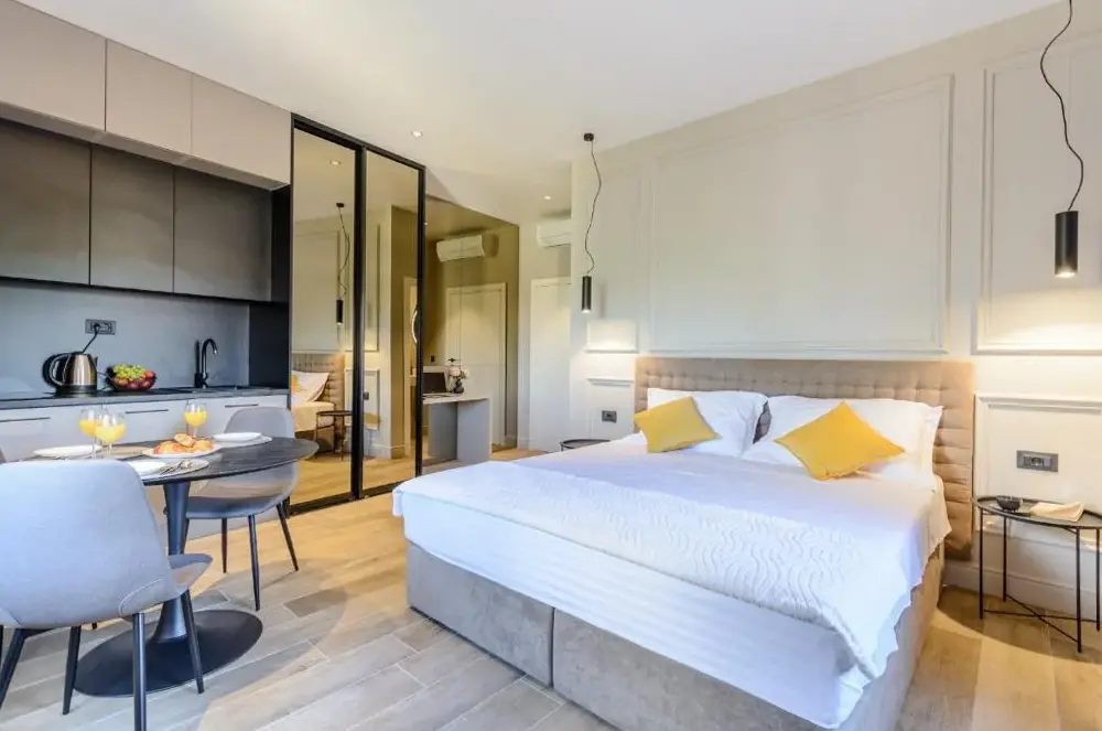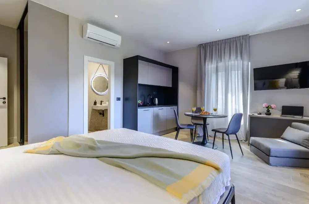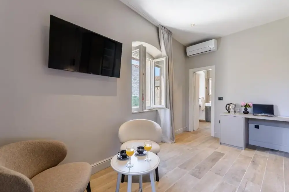 I Dora Rooms and Studios offrono sistemazioni con connessione Wi-Fi gratuita e un angolo bevande in ogni camera, dove è possibile preparare tè o caffè. La struttura si trova al numero 36 di Ulica Radovana Vidovića, nel comune di Sutivan, ideale per chi cerca una base tranquilla ma strategica lungo la costa croata. A pochi passi dalla proprietà si estende la spiaggia di Suvan, perfetta per rilassarsi tra sabbia fine e acque cristalline. In auto, la vicina necropoli dista solo quattro chilometri ed è raggiungibile in meno di cinque minuti, mentre il suggestivo Desert Blaca, noto per i suoi paesaggi rocciosi e panorami mozzafiato sul mare Adriatico, si trova a circa ventisette chilometri di distanza e richiede quarantacinque minuti di guida. Per gli amanti della natura e delle escursioni, questo sito offre percorsi immersi nella macchia mediterranea e viste spettacolari sulla costa. Inoltre, l’aeroporto internazionale più vicino, quello di Brač (Aeroporto BRAC), dista trentiquattro chilometri ed è accessibile in trenta-sei minuti di automobile, utile sia all’arrivo che alla partenza dei viaggiatori. Infine, il centro abitato principale ospita anche un punto di riferimento come il Caffè Bar Centar, situato a sette chilometri da qui e raggiungibile in nove minuti di macchina.